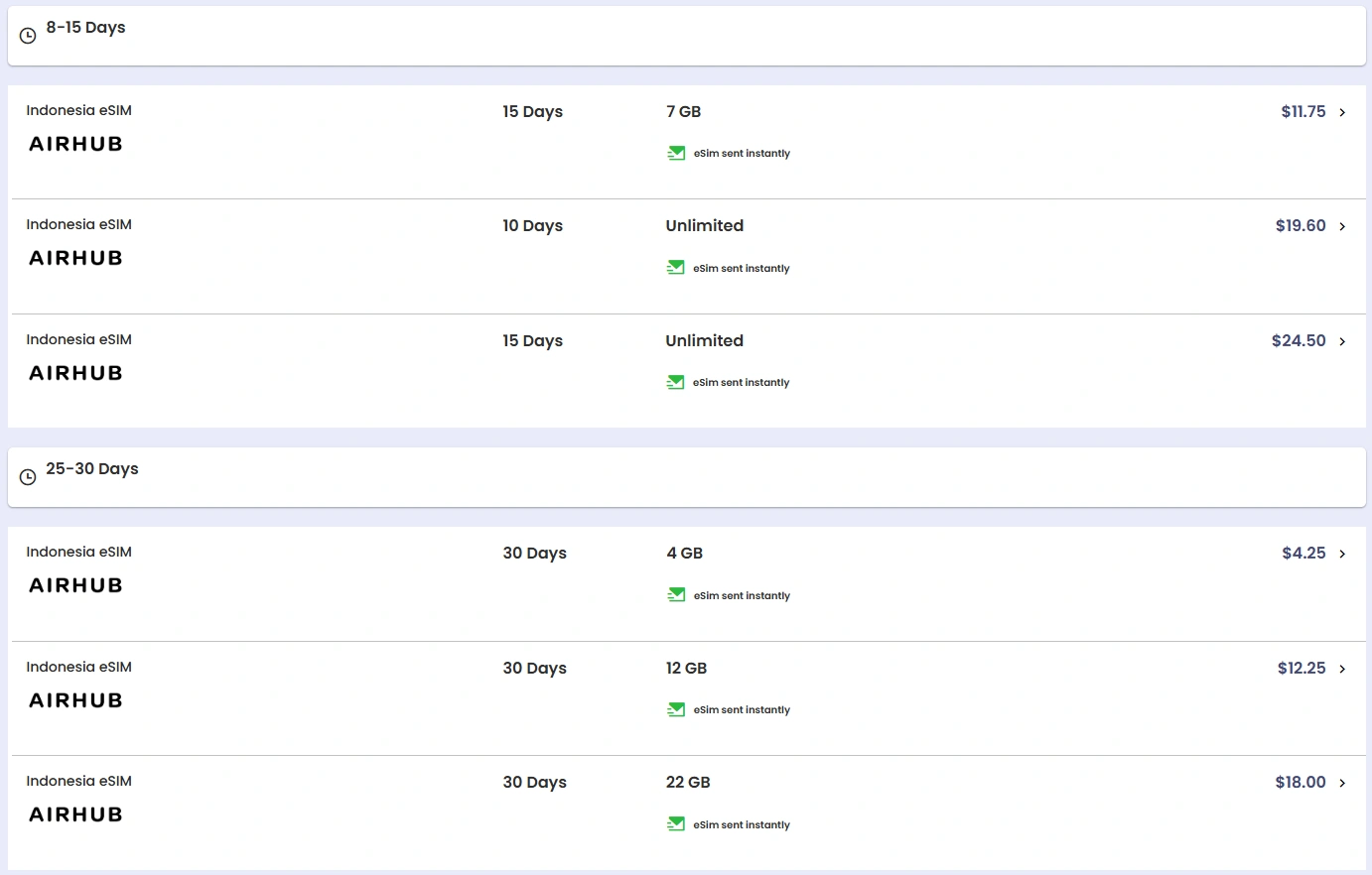 In comparison, AirHub provides less data at similar price points, for example, USD 18 gives 22 GB for 30 days, while BaliEasy offers 36 GB for the same price and validity.
