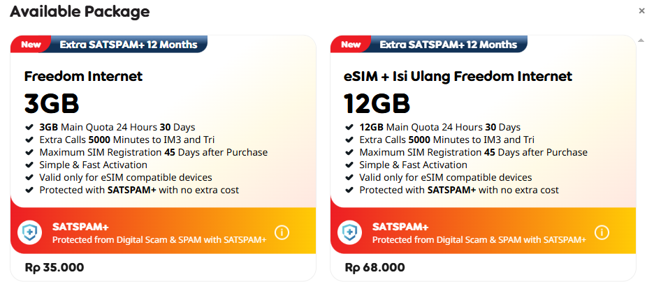 Indosat eSIM is very cheap upfront, especially compared to travel eSIMs. From the official pricing shown, examples include 3GB for Rp 35,000 (≈ USD 2.10) and 12GB for Rp 68,000 (≈ USD 4.08), both valid for 30 days. On paper, this looks like excellent value.