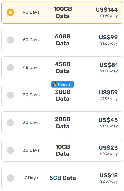 With the same budget BaliEasy offers significantly better value and flexibility. At USD 18, BaliEasy provides 36 GB with 30-day validity, giving travelers much more data and a longer usage period at the same price point.